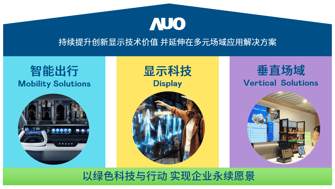 我们持续推动「双轴转型」,,,在精进显示技术附加价值(Go Premium),,与深化垂直市场应用(Go Vertical)的策略下,,,对应尊龙z6的优势竞争力与趋势,,,,我们奠定显示科技、、、智慧移动、、、垂直场域三大永续营运支柱,,,在显示技术领域的根基之上,,延伸布局多元场域应用解决方案。。。将先进显示科技助力智慧移动及垂直场域发展,,,,并以绿色科技与行动为实践,,,,在转型之路上贯彻永续经营之愿景。。。。